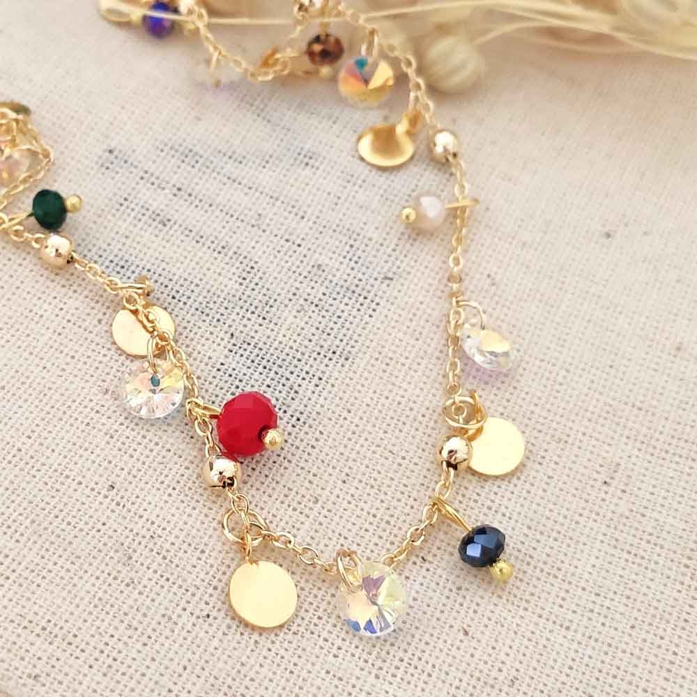 Adoptez ce collier aux perles et cristaux multicolores ! Il donnera la touche colorée et élégante qu'il manquait à votre tenue !