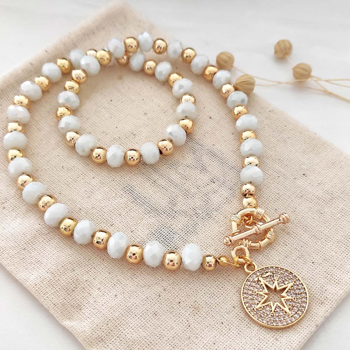 Collier étoile polaire - Laiton plaqué or & zircons