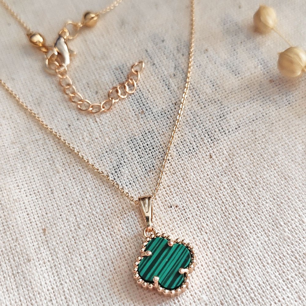 Collier trèfle - Laiton plaqué or & malachite