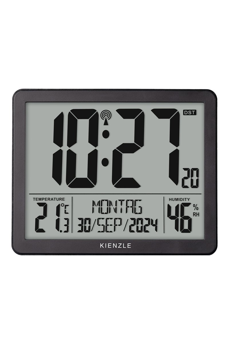 Affichage de la date avec jour de la semaine et heure (format 12/24 heures).