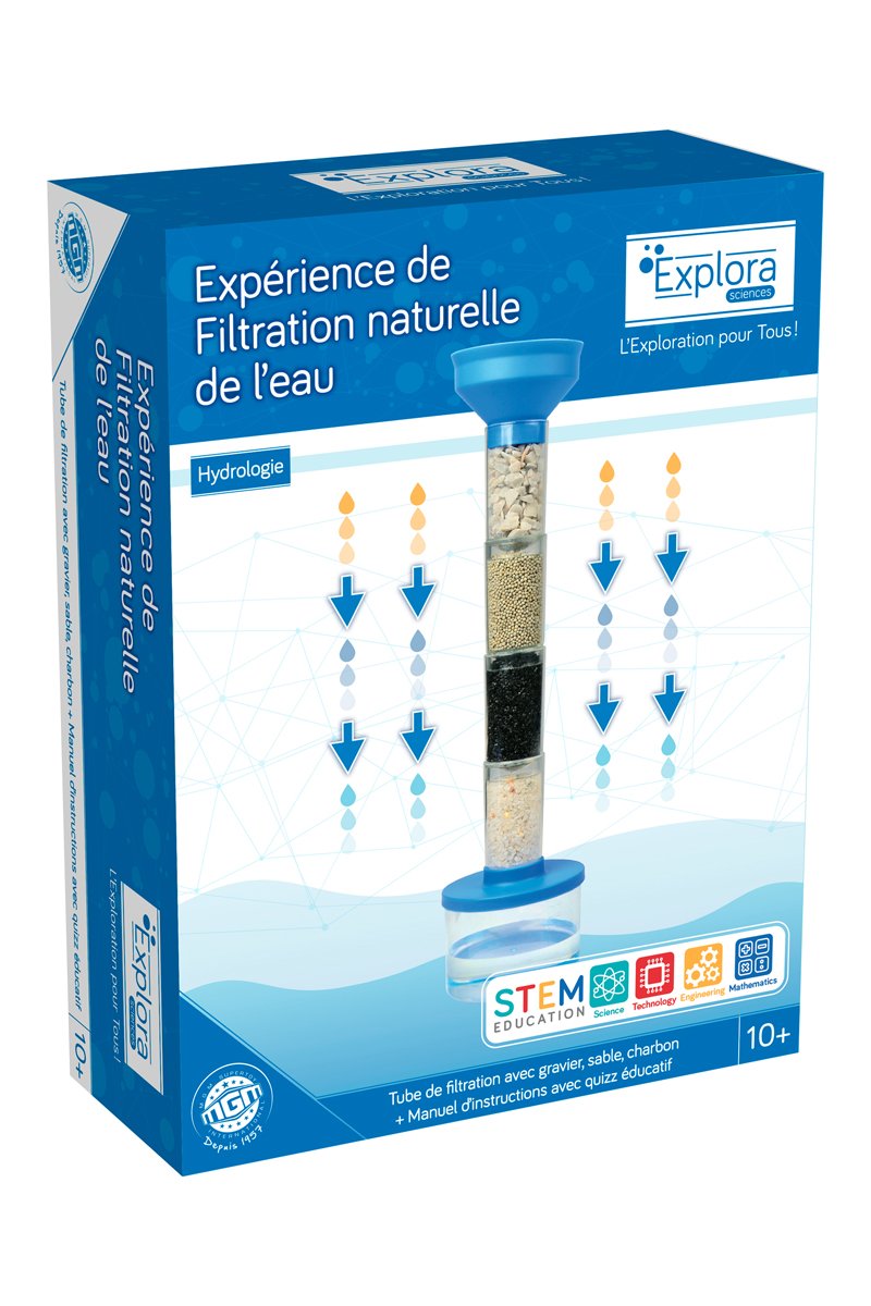 Ce kit contient des filtres, un tube transparent, un entonnoir, un récupérateur d'eau, du granit concassé, du sable de porcelaine, du charbon actif, du bicarbonate de soude, du potassium et du sable de quartz.
