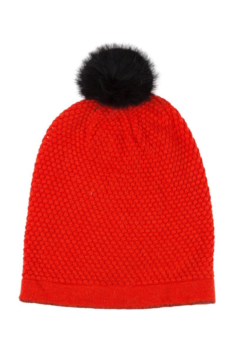 Bonnet en laine, alpaga et fourrure de lapin Happening - Rouge