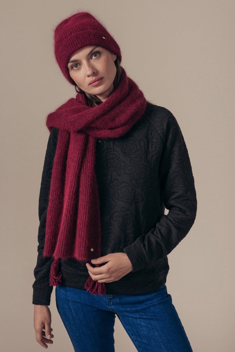Echarpe en angora et laine Haude - Bordeaux