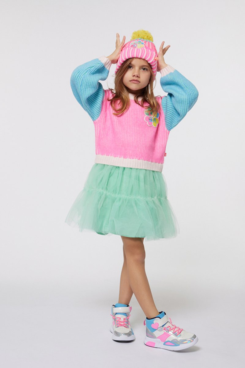 Girly et ludique, la marque Billieblush propose des tenues aux coupes confortables et aux détails raffinés pour les princesses des temps modernes. Issue d’un savoir-faire français de plus de quatre décennies dans le domaine de la mode enfantine, la marque Billieblush est née en 2012 au sein du groupe CWF.