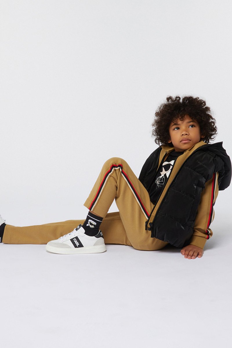 Le créateur Karl Lagerfeld a apporté un vent de fantaisie au dressing des enfants à travers une collection chic, rock et graphique, à son image. Il mettait en avant son célèbre chat Choupette et son propre profil, dans un univers fun et décalé. Un vestiaire digne des collections haute couture pour permettre aux enfants d’exprimer eux aussi leur sens de la mode.