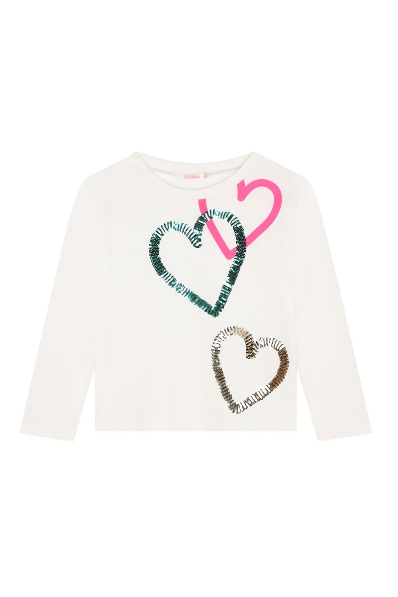 Motifs cœurs et sequins devant.