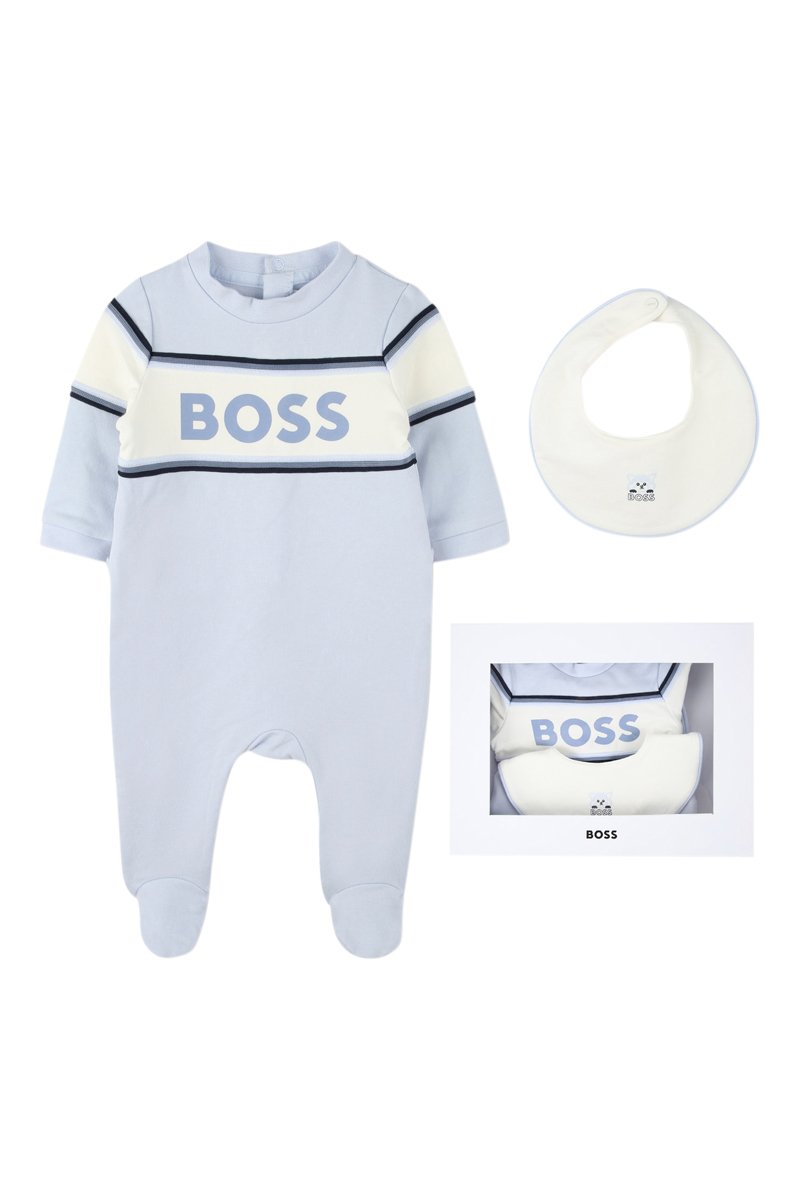Grenouillère et bavoir en coton biologique - Ciel - Boss
