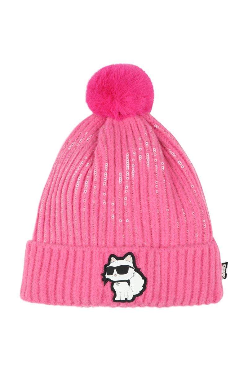 Bonnet à pompon - Rose - Karl Lagerfeld
