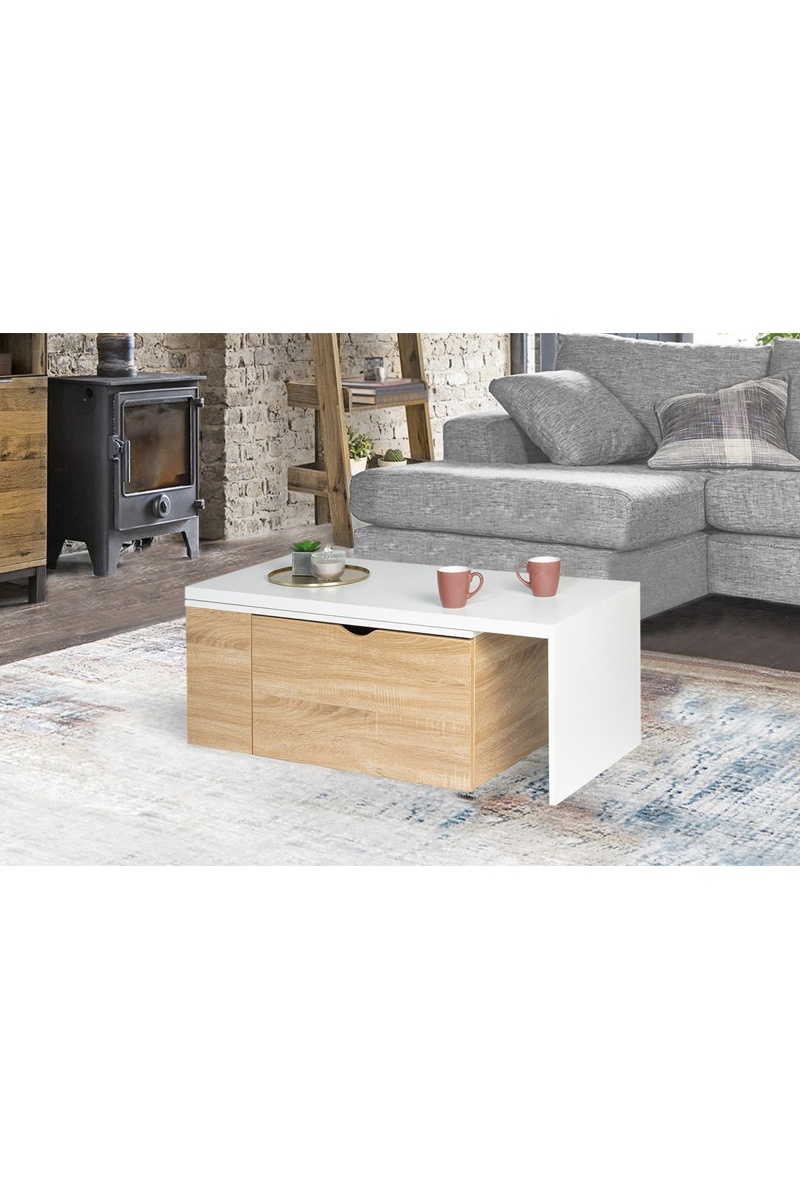Table basse avec plateau rotatif à 360°.