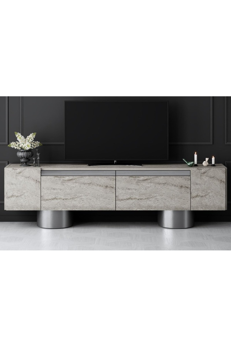 Meuble TV 2 abattants Bohem et argenté - 180 x 50 x 30 cm