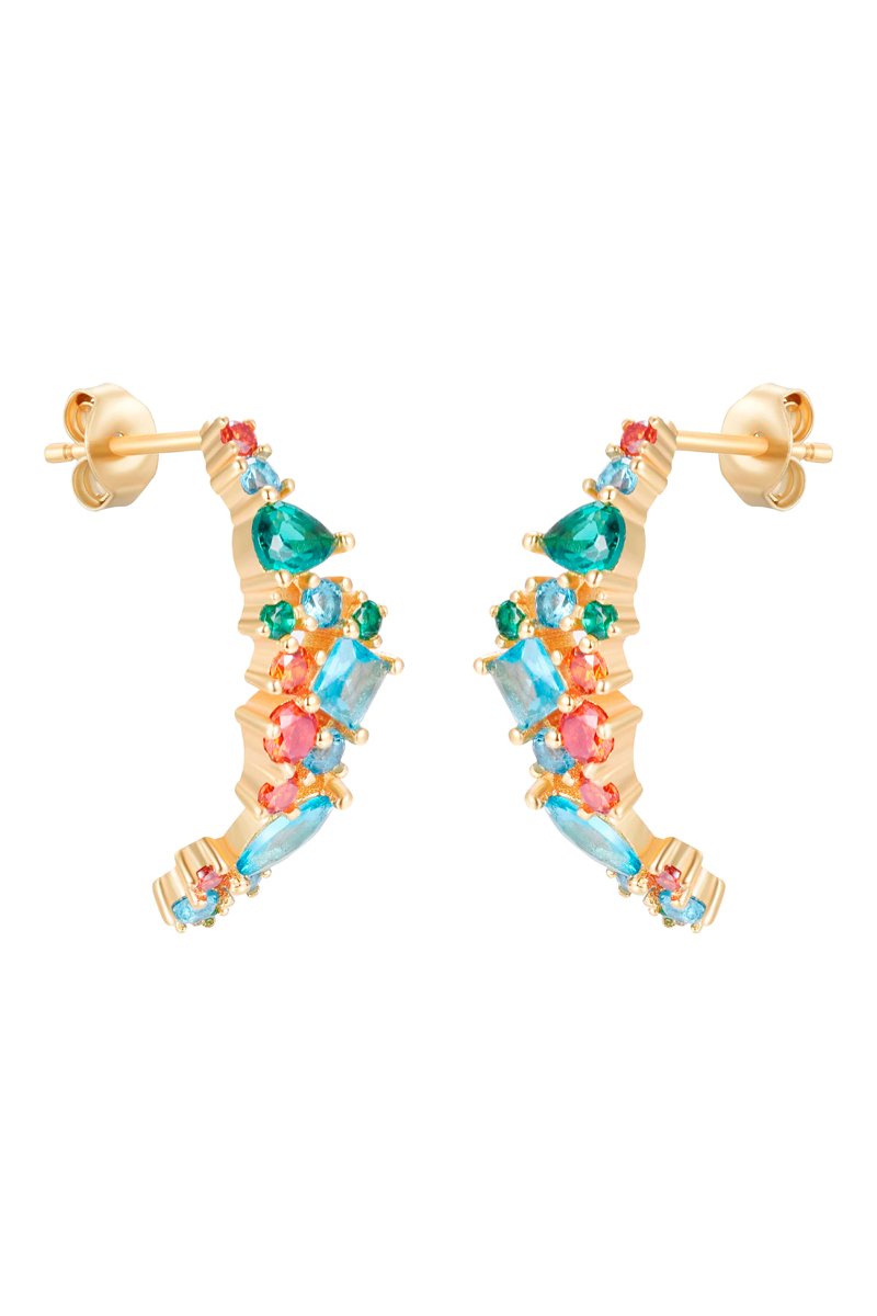 Boucles d'oreilles en argent plaqué or jaune serties de zirconiums.