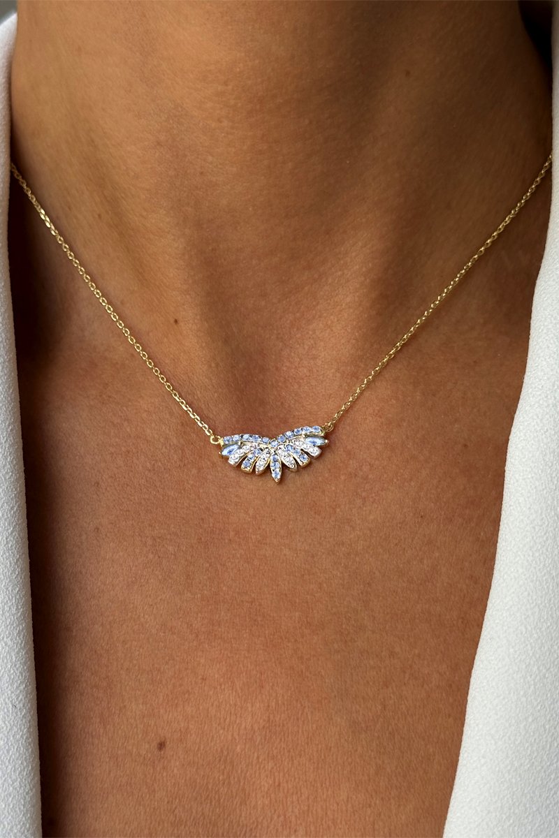 Collier en argent plaqué or jaune avec pendentif serti de zirconiums.