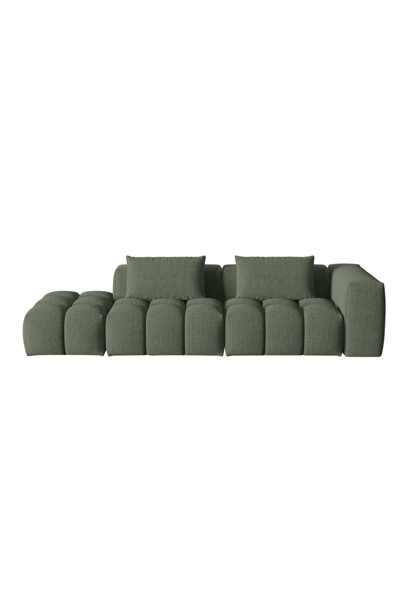 Canapé modulable gauche Lorella - Vert olive - 3 places - Revêtement en tissu