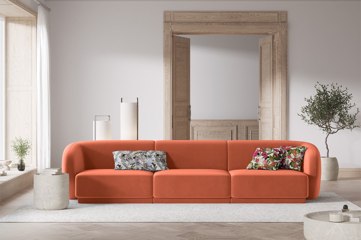 Canapé modulaire Lionel - Corail - 3 places - En tissu velours