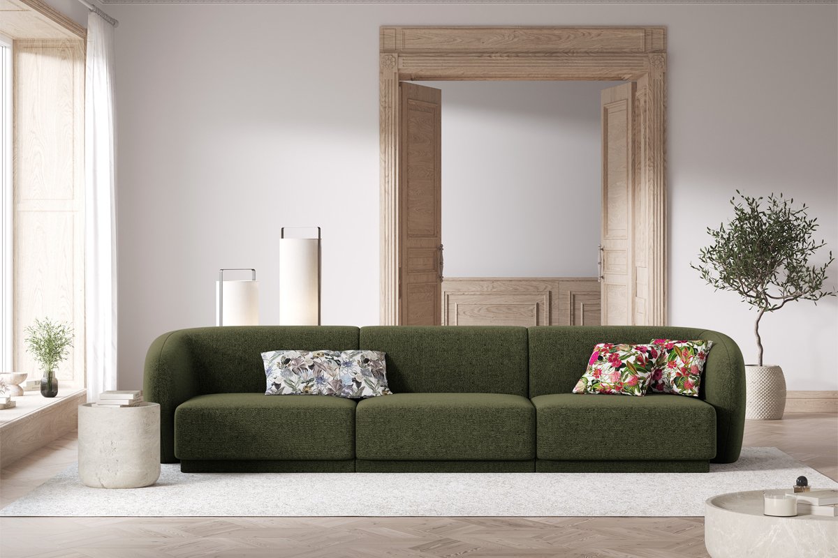 Canapé modulaire Lionel - Kaki - 3 places - Toucher tissu chenille