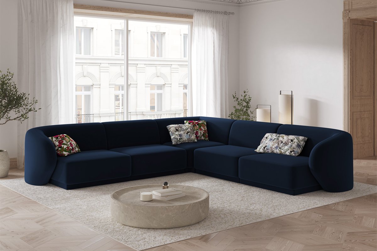 Canapé d'angle modulable Lionel - Bleu roi - 6 places - Toucher velours