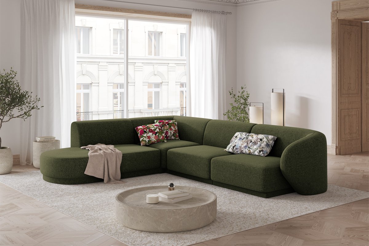 Canapé d'angle gauche Lionel - Kaki - 5 places - Toucher tissu chenille