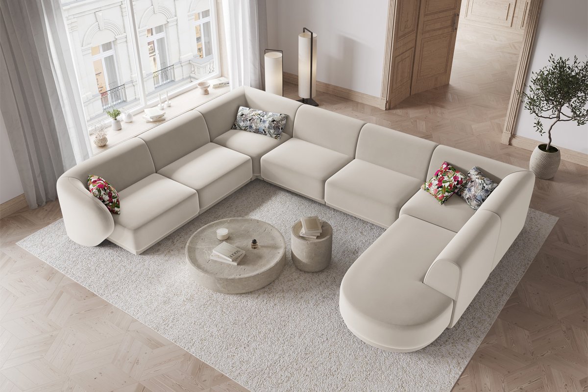 Canapé d’angle gauche panoramique Lionel - Beige - 8 places - Toucher velours