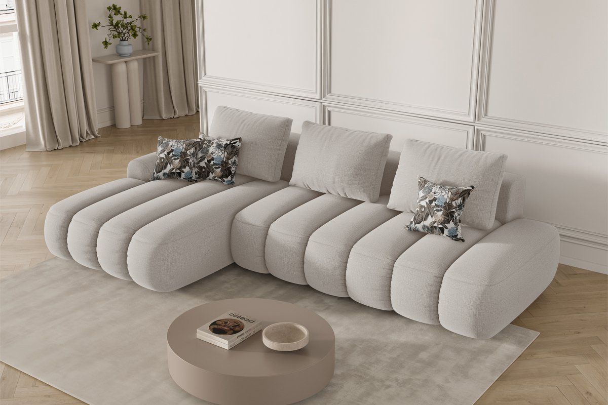 Canapé d'angle gauche convertible Simona - Beige - 4 places - En polyester