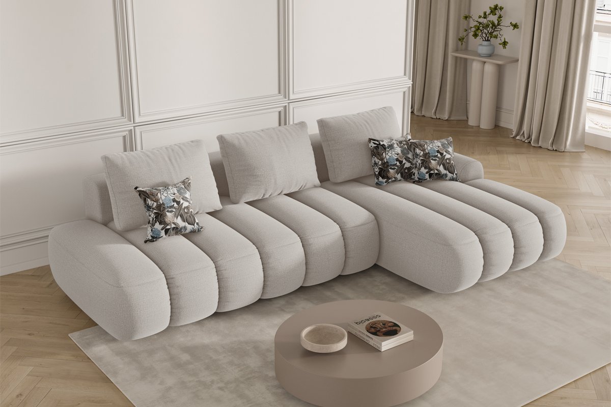 Canapé d'angle droit convertible Simona - Beige - 4 places - En polyester
