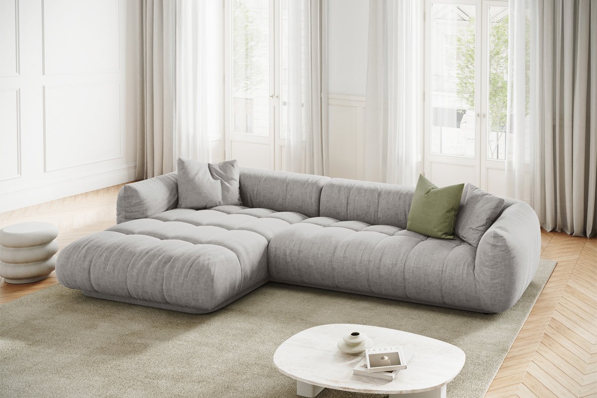 Canapé d’angle gauche modulaire Julia - Gris clair - 3 places - En polyester et nylon