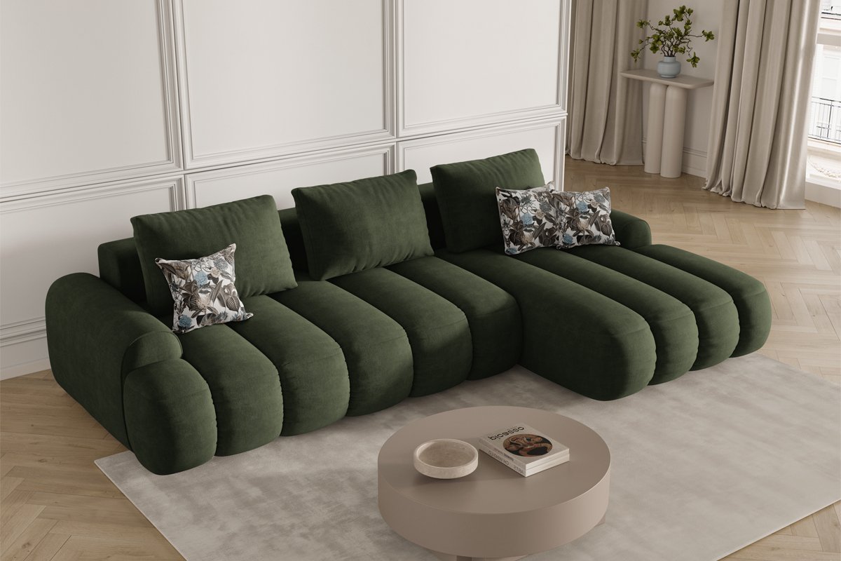 La localisation de l’angle, gauche ou droite, correspond à la vision d’une personne se tenant face au canapé.