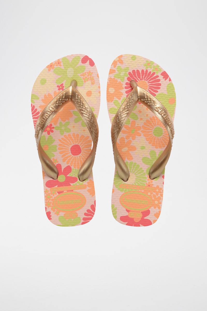 Tongs Kids Flores - Orange et vert