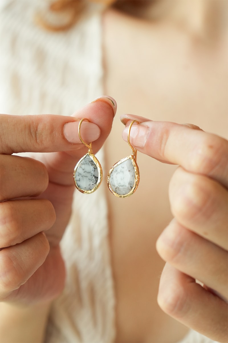 Boucles d'oreilles pendantes serties d'une dendrite opale.