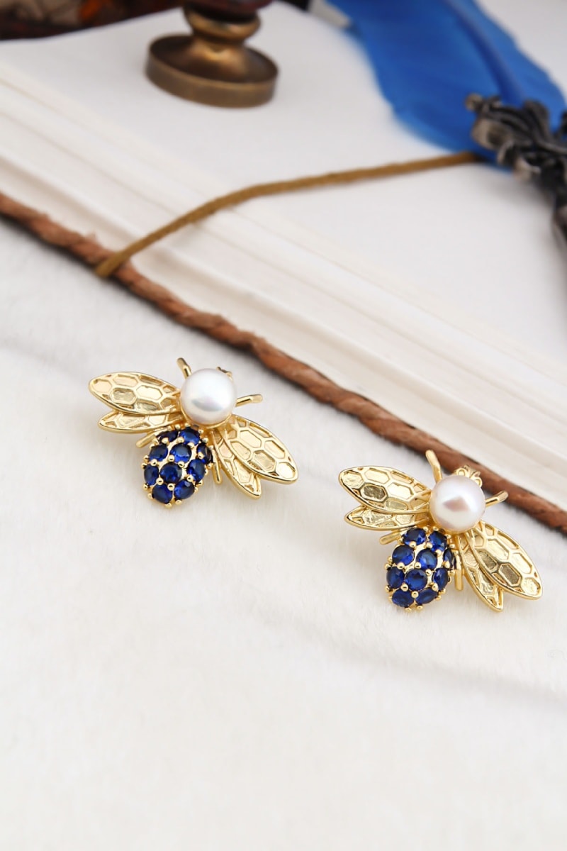 Puces - Plaqué or jaune, zircons et perles de culture