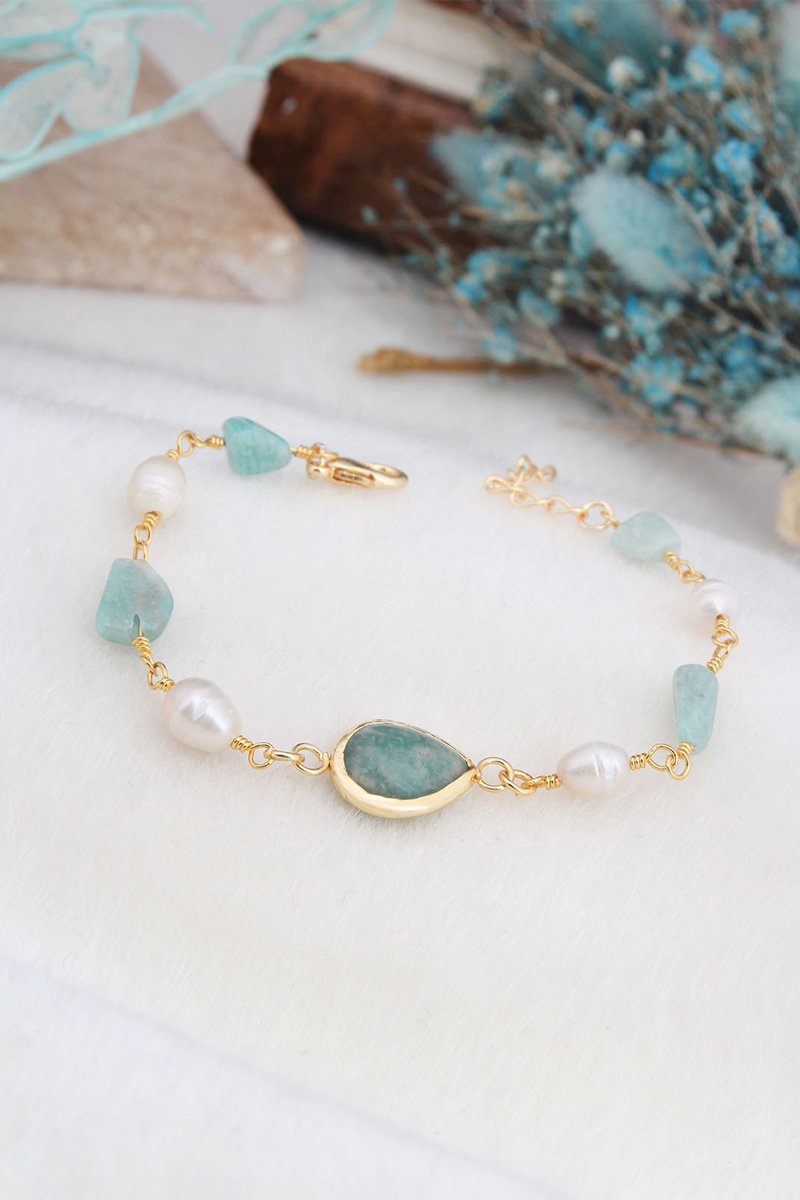 Bracelet - Plaqué or jaune, amazonites et perles de culture