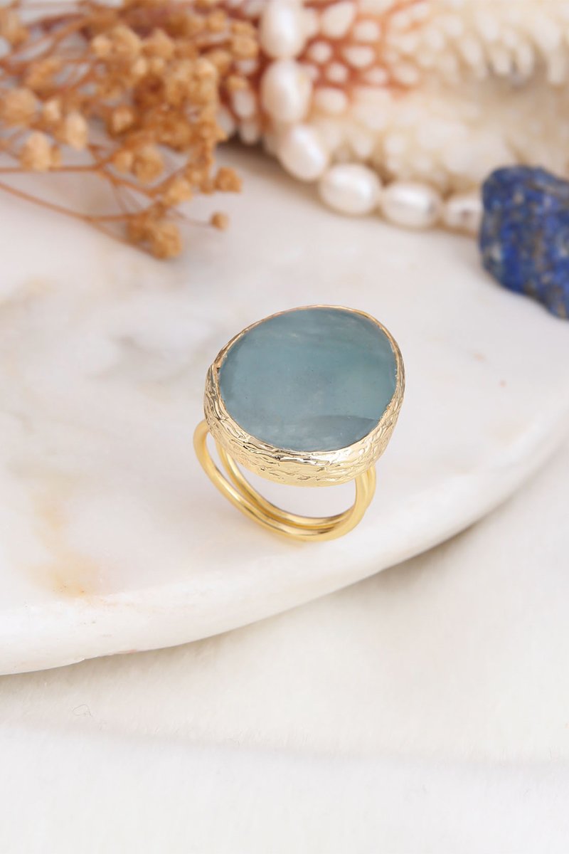 Bague - Plaqué or jaune et aigue-marine