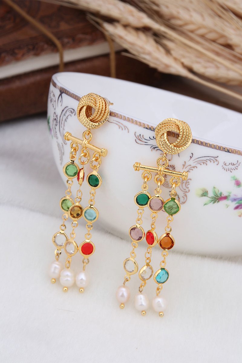 Boucles d’oreilles serties de cristaux et de perles d’imitation.