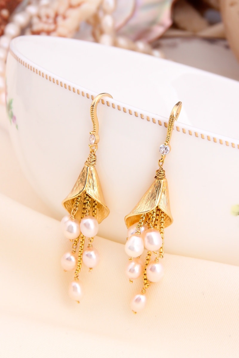Boucles d'oreilles en plaqué or jaune serties de 6 perles d’imitation et de cristaux.