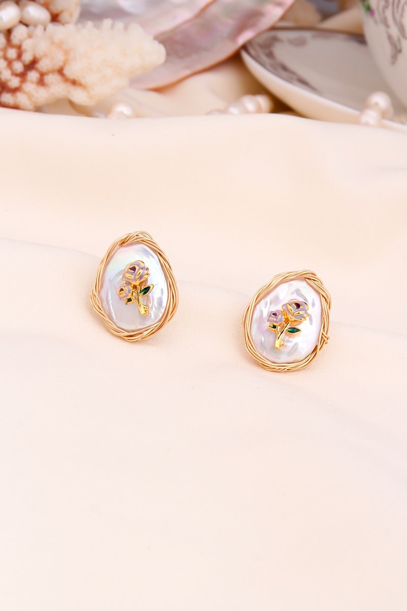 Puces en plaqué or jaune serties de nacre.