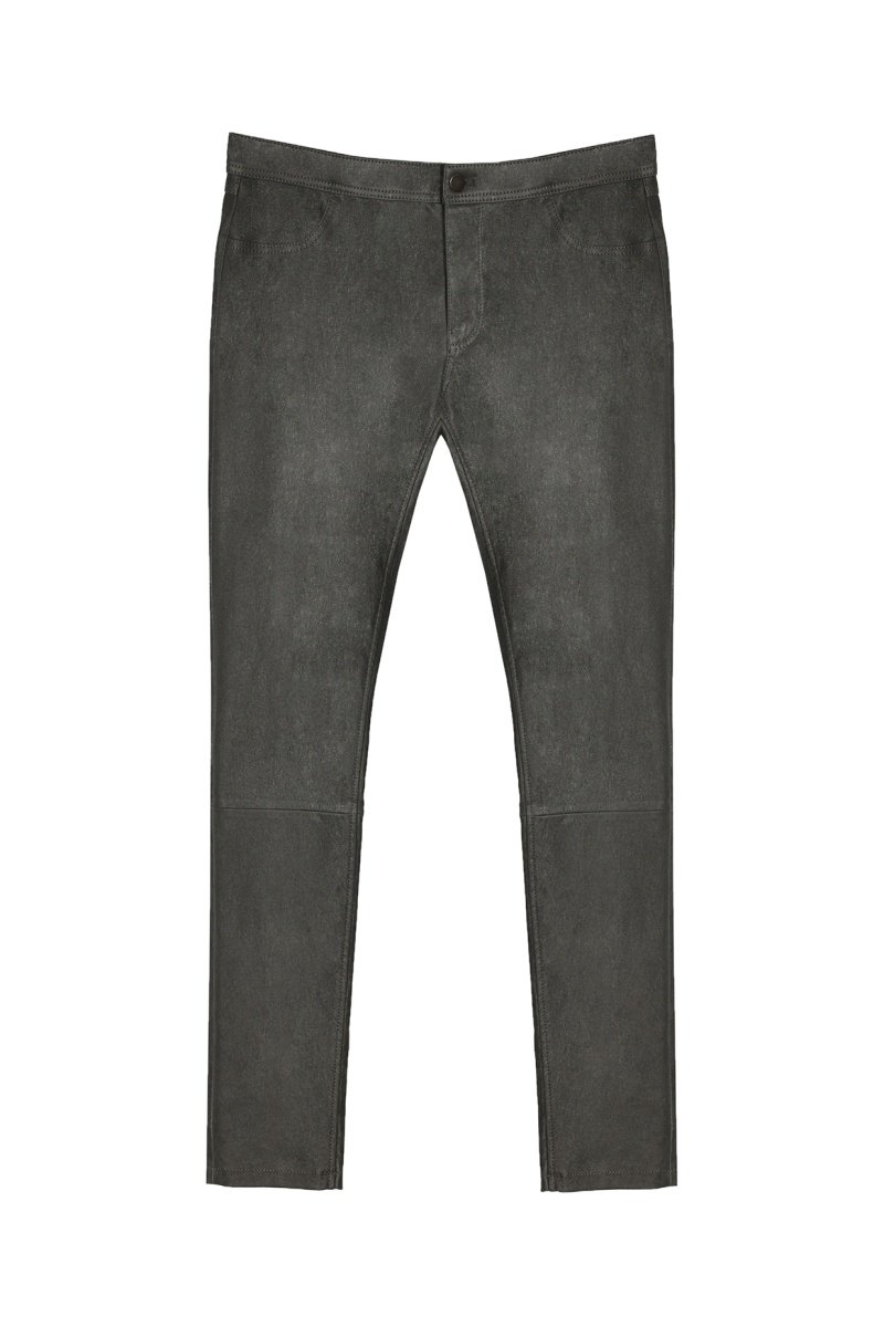 Pantalon skinny en cuir d'agneau - Gris