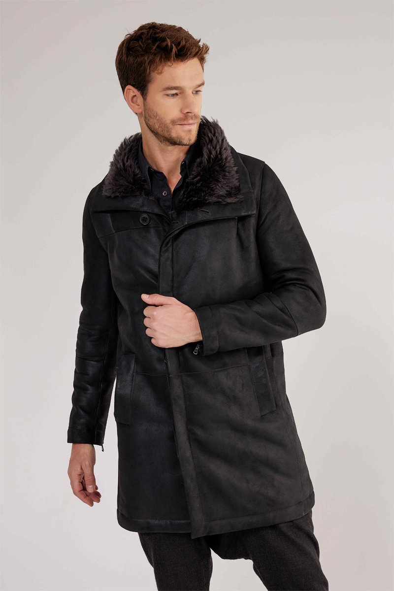 Manteau en peau de mouton lainée - Anthracite