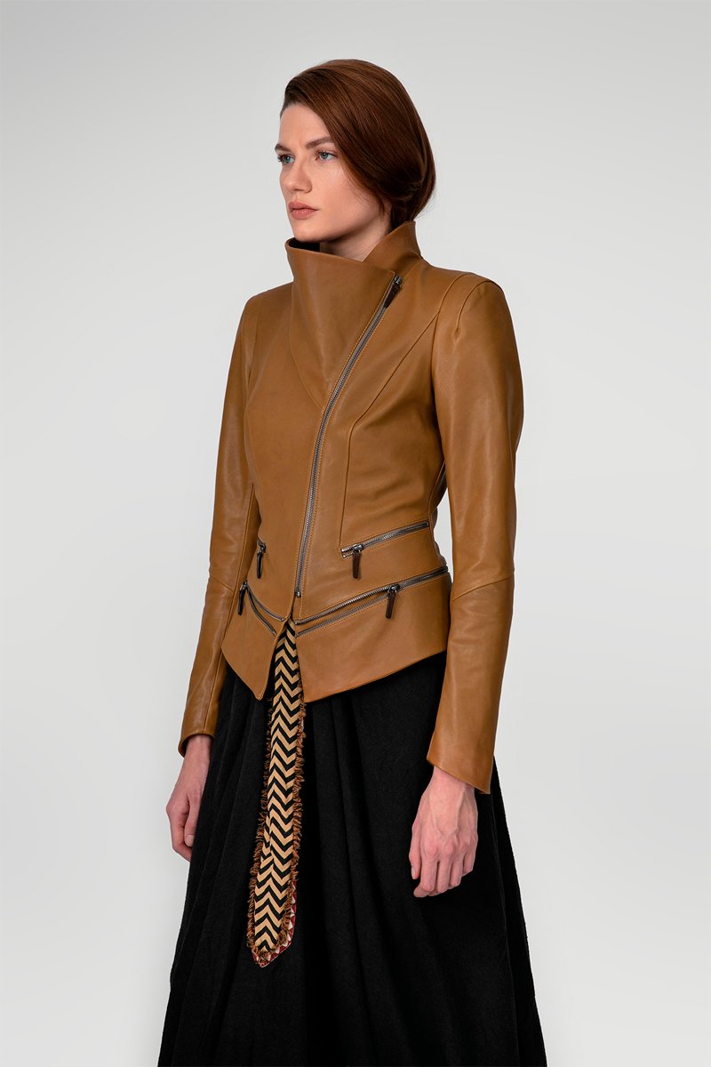 Veste en cuir d’agneau - Camel