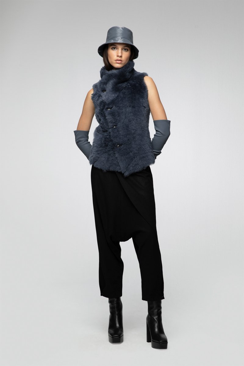 Veste sans manches en peau lainée de mouton - Indigo