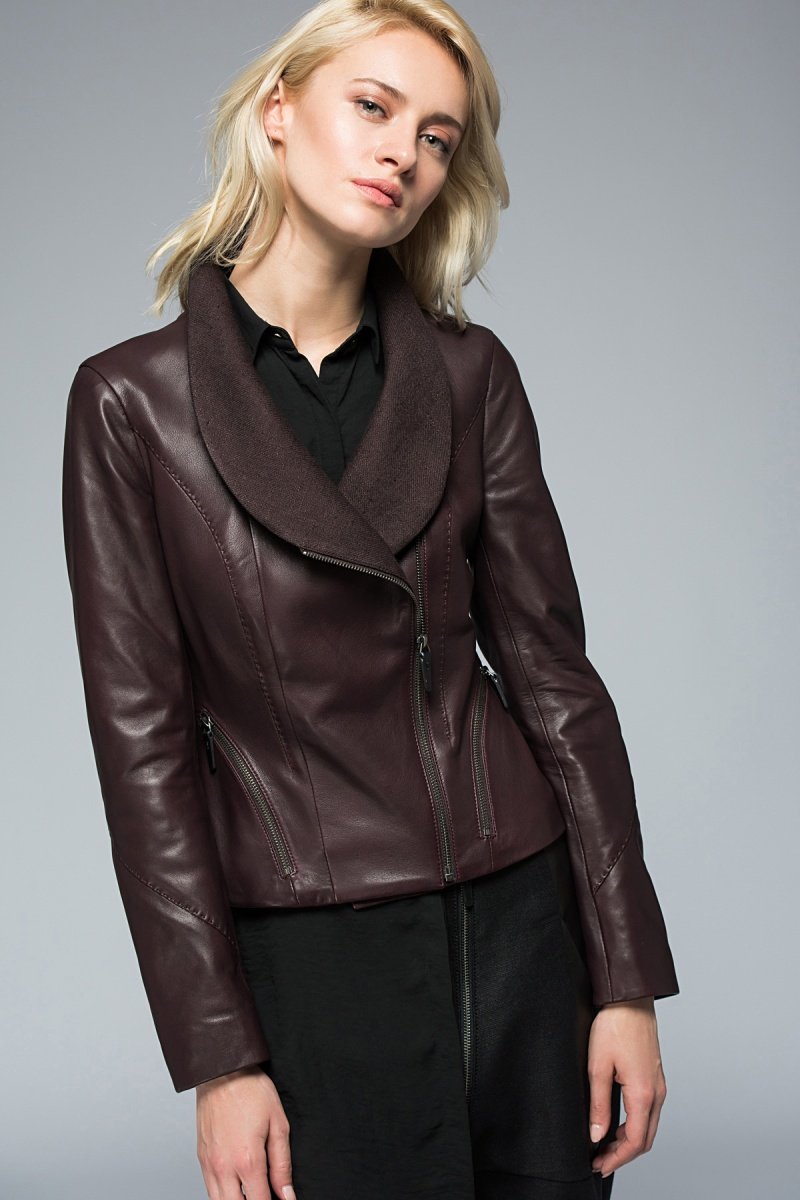 Veste en cuir d'agneau - Bordeaux