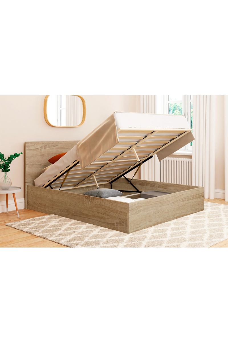 Coffre de rangement sous le sommier.