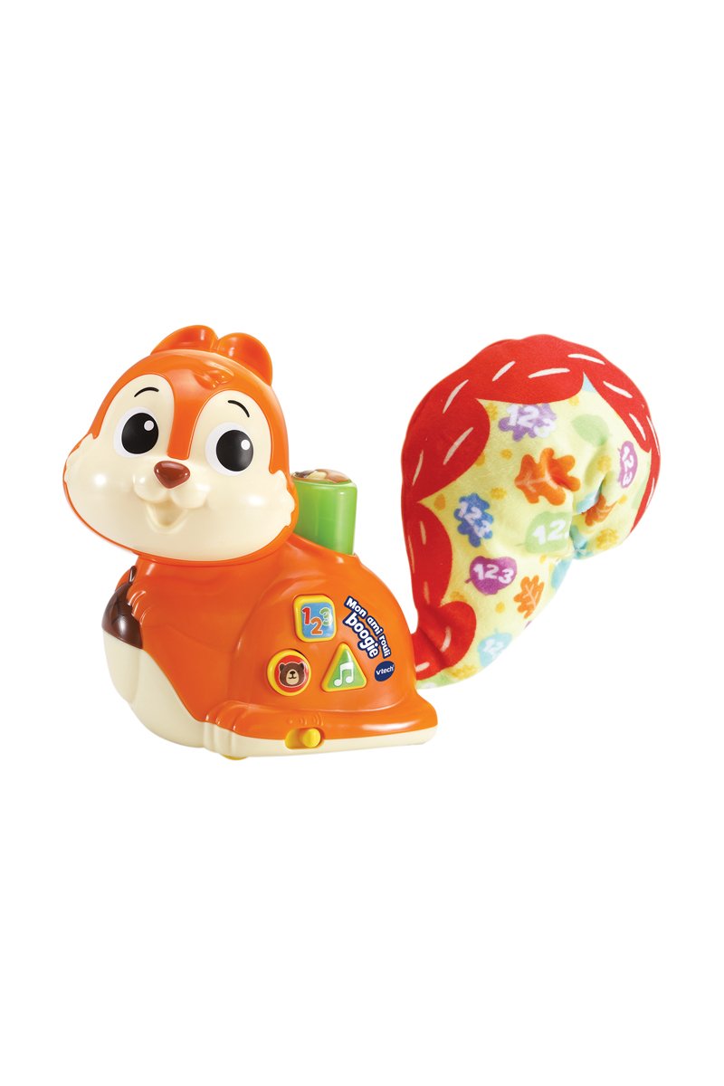 Un bouton lumineux Press & Go pour voir l’écureuil avancer tout en agitant sa queue. Lorsqu’il appuie sur le bouton, Bébé déclenche des sons et des phrases amusantes et déclenche des activités l’invitant à suivre l’écureuil.