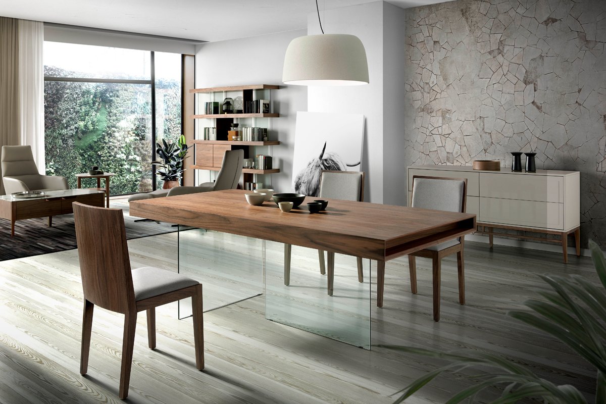 Table à manger - Imitation noyer et transparent