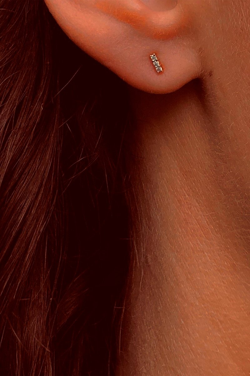 Puces en or blanc serties de 3 diamants.