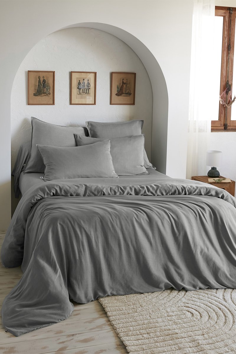 Toutes nos parures de lit pour 2 personnes comportent 2 taies d’oreiller : à partir de la dimension 200 x 200 cm pour les parures avec housse de couette, à partir de la dimension 240 x 300 cm pour les parures avec drap plat.