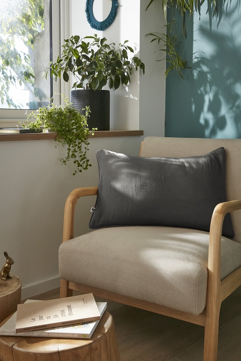 Coussin en gaze de coton Gaïa - Anthracite - 40 x 60 cm