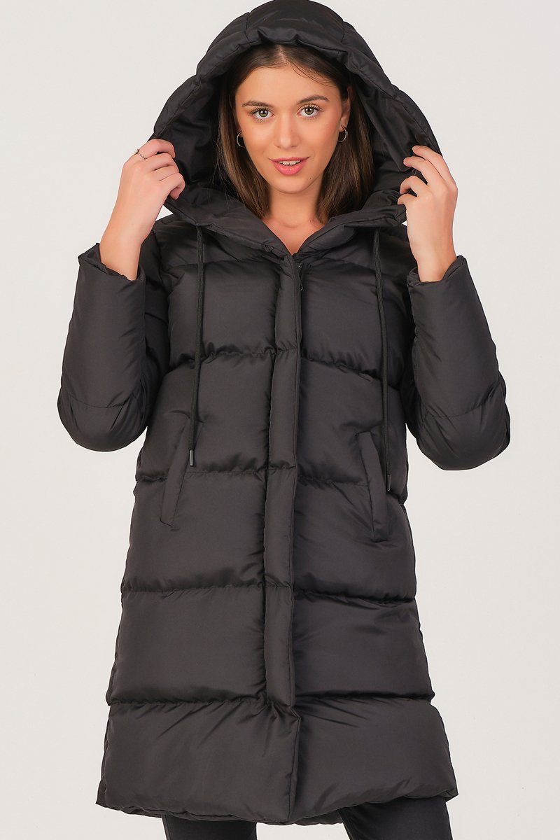 Doudoune longue à capuche - Noir