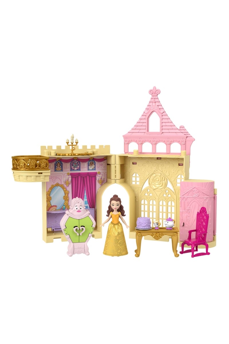 Les fans vont adorer le coffret Le Château de Belle, inspiré du classique La Belle et la Bête ! Cette charmante petite maison de poupée s’ouvre en deux pour dévoiler plusieurs zones de jeu, une poupée Belle, quatre amis, du mobilier et bien d’autres accessoires. Grâce à sa poignée, le coffret se transporte facilement et peut se connecter à d’autres coffrets de la collection Histoires à Empiler pour agrandir le royaume.