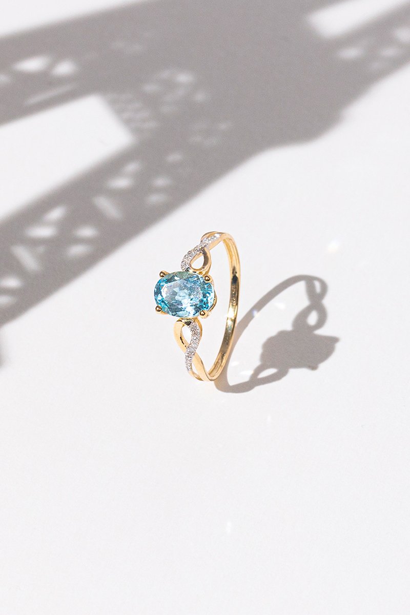 Matière : or jaune 375/1000, diamants 0,04 carat/14 et topaze 1,7 carats/1