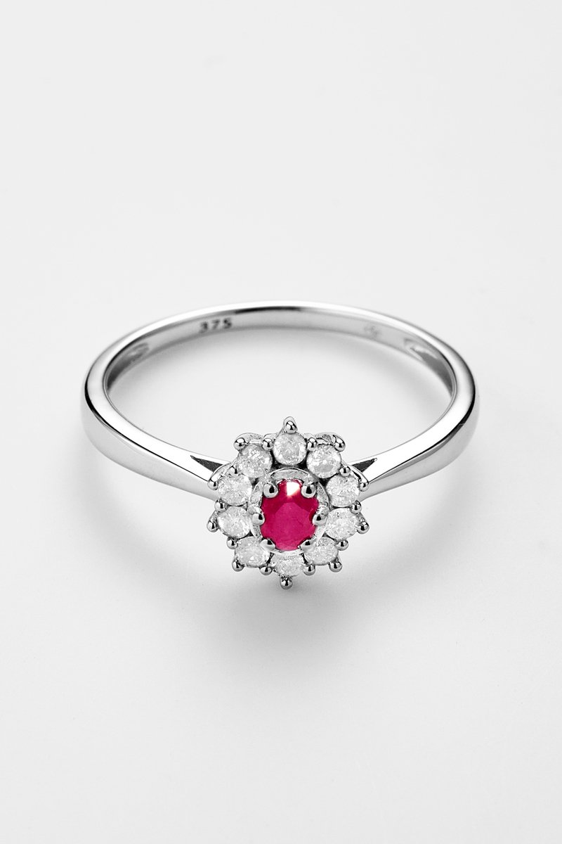 Matière : or blanc 375/1000, diamants 0,26 carat/10 et rubis 0,25 carat/1