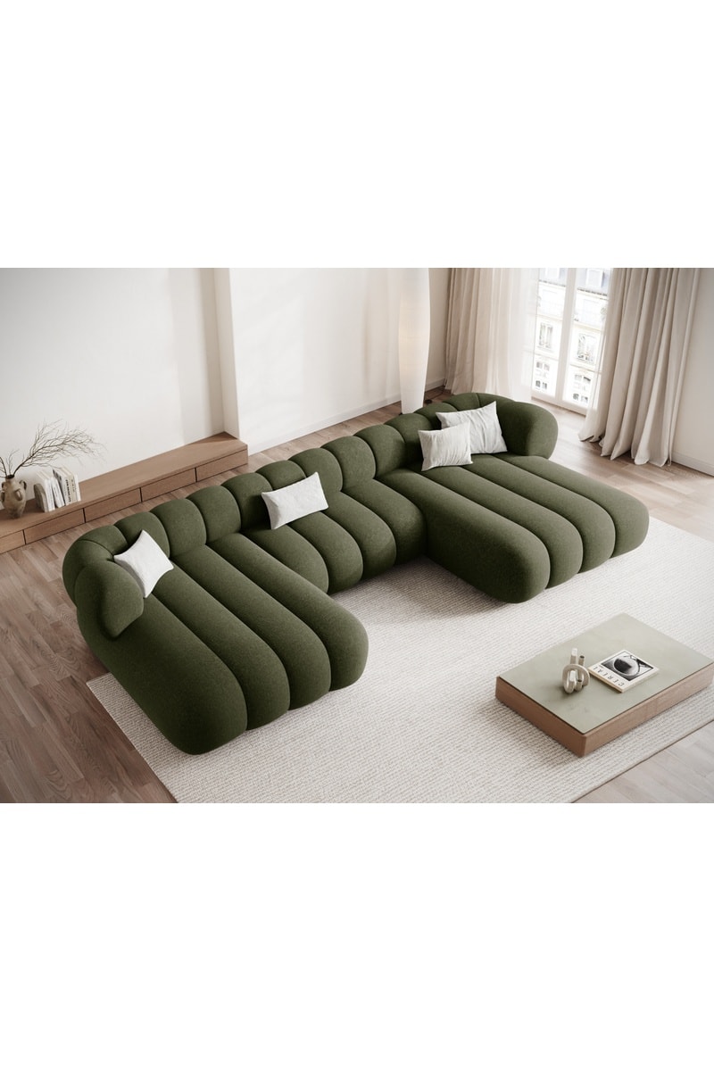 Canapé d’angle panoramique Koge - Vert - 6 places - En tissu chenille
